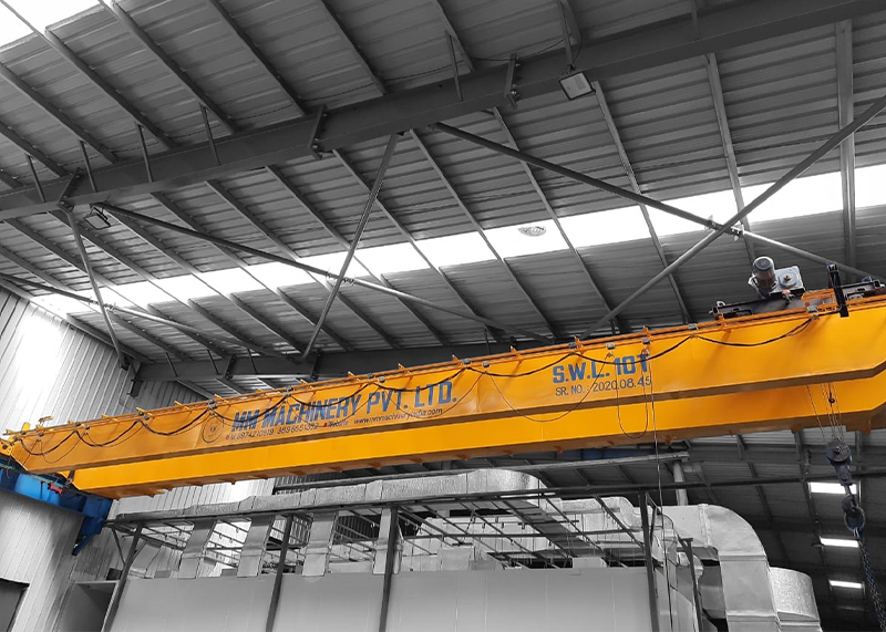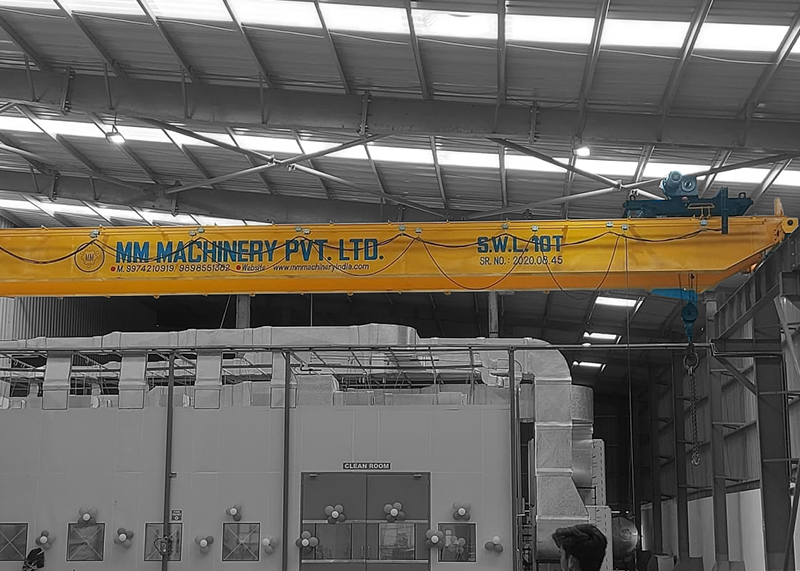 Moving Material Resources Safely With Care : MM Machinery Pvt.Ltd. (MM Enterprise) Single Girder and Double Girder E.O.T. Cranes are designed and manufactured in accordance with IS/BS/DIN. Considering adequate factors of safety with respect to appropriate duty, the structural parts of the cranes are designed in accordance with IS/BS/DIN. MM Machinery Pvt.Ltd. (MM Enterprise) also manufactures / utilises standard components and controls to ensure reliability.