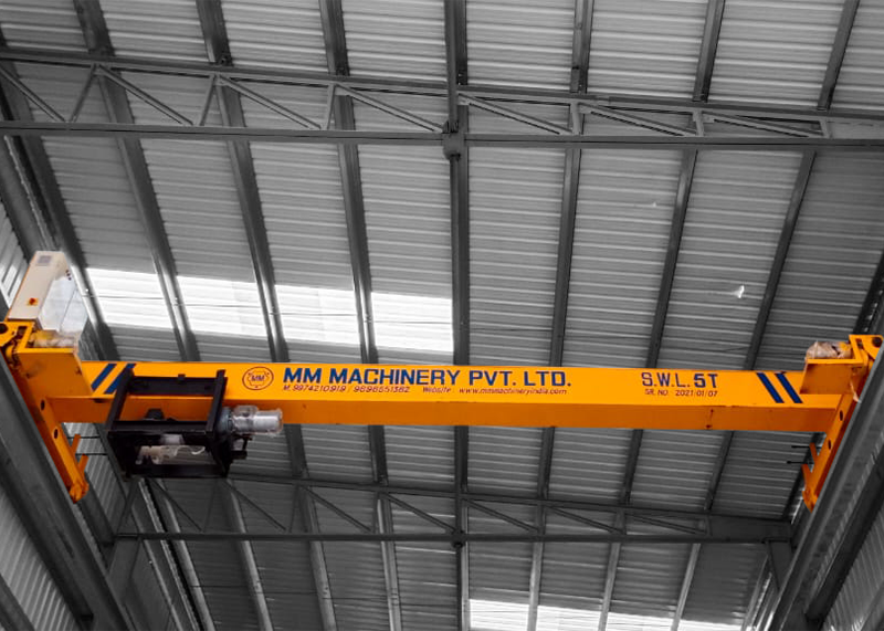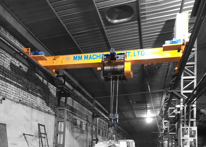 Moving Material Resources Safely With Care : MM Machinery Pvt.Ltd. (MM Enterprise) Single Girder and Double Girder E.O.T. Cranes are designed and manufactured in accordance with IS/BS/DIN. Considering adequate factors of safety with respect to appropriate duty, the structural parts of the cranes are designed in accordance with IS/BS/DIN. MM Machinery Pvt.Ltd. (MM Enterprise) also manufactures / utilises standard components and controls to ensure reliability.